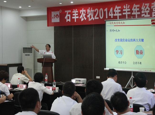 7月3日,石羊集團(tuán)農(nóng)牧產(chǎn)業(yè)2014年上半年經(jīng)營(yíng)檢討會(huì)在臨潼隆重召開。集團(tuán)總裁常青山、集團(tuán)副總裁兼農(nóng)牧公司總經(jīng)理韓春元出席會(huì)議,各事業(yè)部總經(jīng)理、各線路負(fù)責(zé)人、各子分公司副總經(jīng)理以上人員及財(cái)務(wù)線路近百人參加會(huì)議。