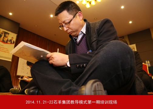 11月20日—22日,石羊集團教導培訓第一期在未央湖畔的度假酒店成功舉行。按集團董事長魏存成在2014年第三季度經營檢討會上的部署,本次活動旨在向各事業部主管級以上人員傳達、推廣教導模式。此次培訓得到了大量教導家人的支持,現場邀請到師道書院汪蓉老師,同時還感召到王亞妮、丘煒等企業家人作為教導員。此次培訓學員分別來自匯邦地產、金融、農牧、大食品及外部學員共計75人,培訓導師、教導團和小天使人員30余人。