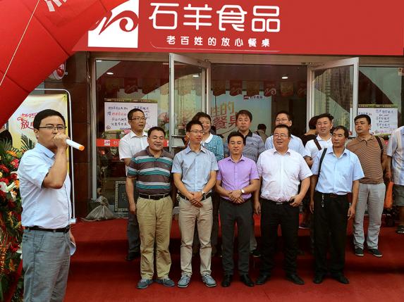 為進一步貼近終端消費者、讓古城人民更好體驗石羊食品的安全、健康、便捷,2015年8月28日,經過為期兩個月的緊張籌備,石羊食品鳳鳴華府店正式開門揖客,集團行政人事部總經理周博寧、食品事業部總經理王曉勇及副總趙超等撥冗親臨并為新店開業剪彩。