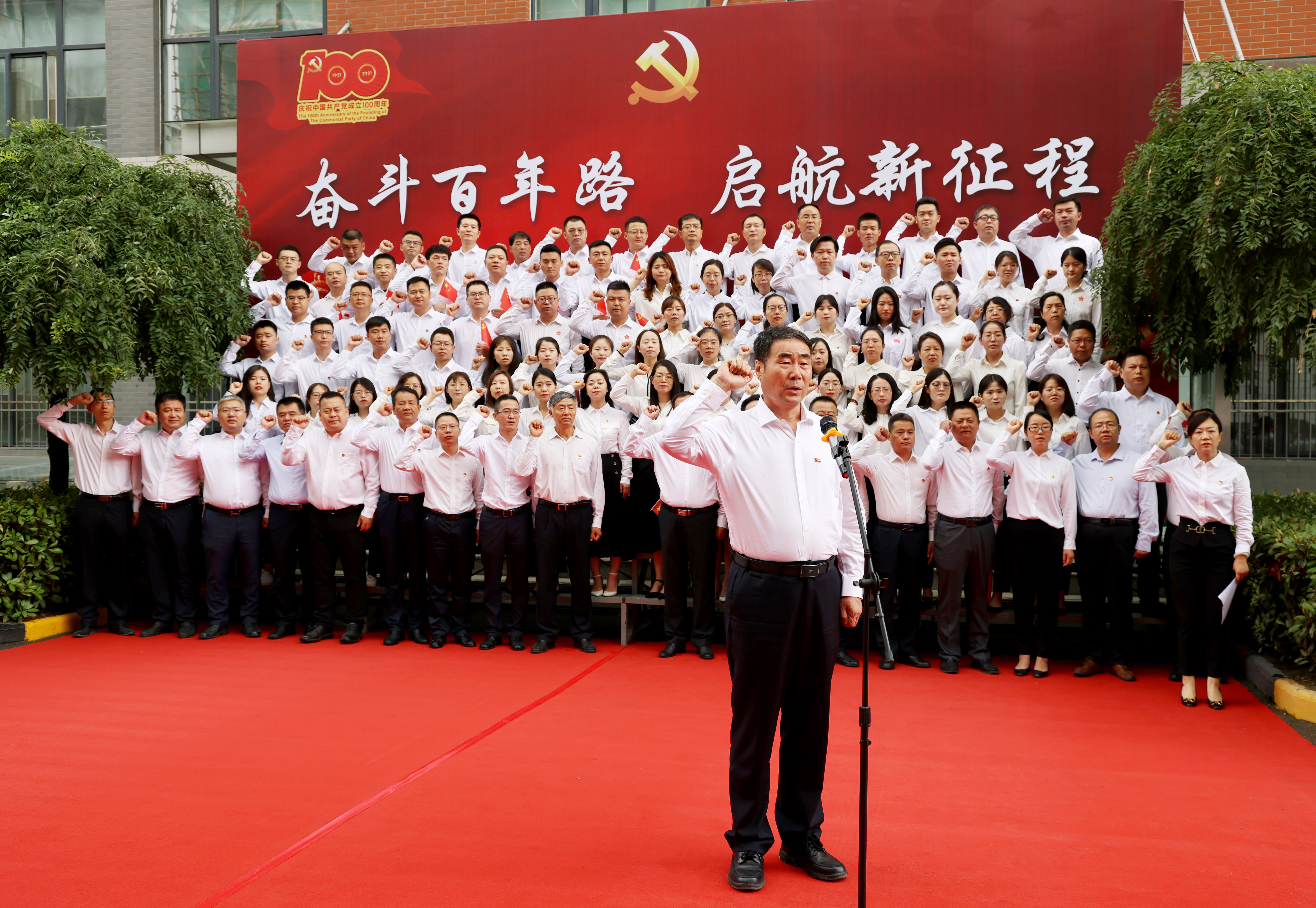 “我志愿加入中國共產(chǎn)黨,擁護黨的綱領(lǐng),遵守黨的章程,履行黨員義務(wù),執(zhí)行黨的決定……”集團黨委書記、董事長魏存成帶領(lǐng)全體黨員,面向鮮紅的中國共產(chǎn)黨黨旗,重溫入黨誓詞。