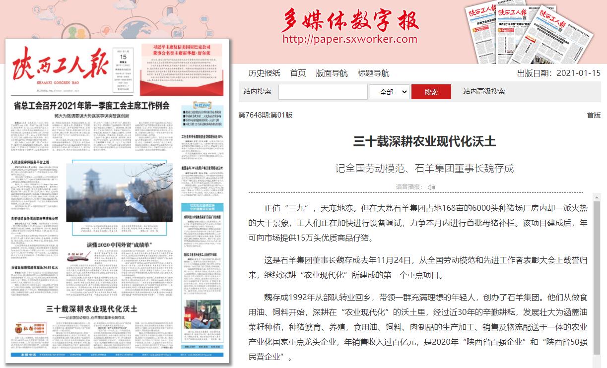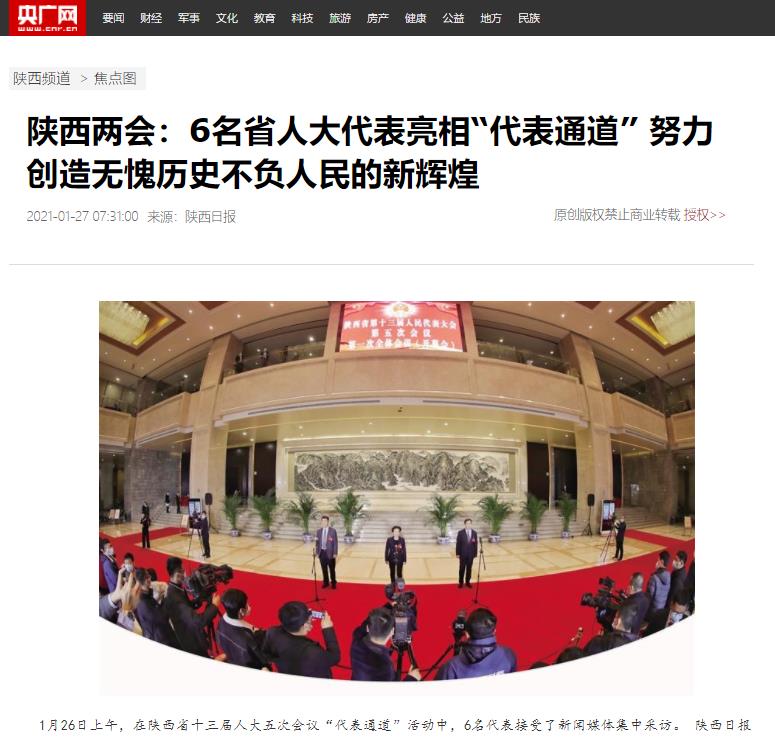 1月26日,陜西省第十三屆人民代表大會第五次會議開幕。石羊集團黨委書記、董事長 魏存成作為6名亮相兩會代表通道的省人大代表之一
